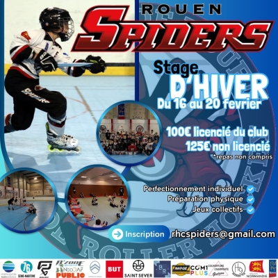 STAGE D’HIVER SPIDERS – À NE PAS MANQUER ! Les inscriptions sont OUVERTES Une semaine intense, fun et 100 % roller hockey t’attend pendant les vacances...
